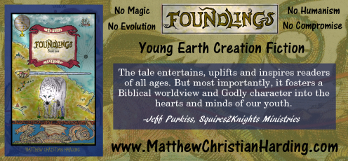 “Foundlings weaves together the Biblical principles of chivalry, truth, courage, duty, faith and love within the framework of Genesis, and a bold adherence to its historicity. It’s an exciting page turner that leaves you wanting more, but more importantly it leaves the reader with Godly heroes to think on and emulate, and a young earth creationist view of history that conforms to the Word of God.”