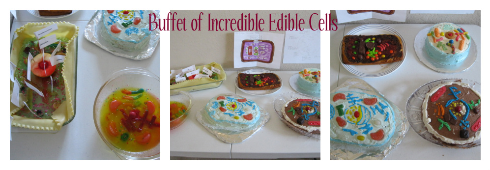 And lastly, no study of the cell would be complete without the Edible Cell Project.  I was secretly hoping for something gooey and disgusting, but they all did an amazing job!   You can click the picture to see a larger image.