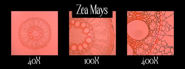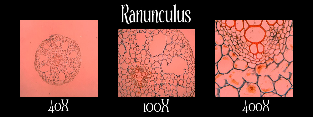 Next we compared some plant cells (Zea Mays and Ranunculus) to animals cells (Hydra).  Because of the 3D quality of the Hydra, it was difficult to get a good photo, but here goes:
