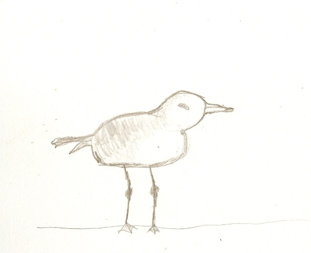 My reluctant artist….Well, he’s still a reluctant artist, but I’m not ready to give up on him yet!   I really believe that as we continue through this book, he will continue to grow in confidence!  I know that as he puts these concepts into practice and learns new techniques, he too will be happy with his finished results.  In the lesson we completed yesterday, he started out frustrated with his beginning sketch.  But once he added some pattern, texture and shading it really made a difference.  (I think his seagull is quite nice…I’m gonna be in so much trouble!)  You just can’t give up too early, right?
