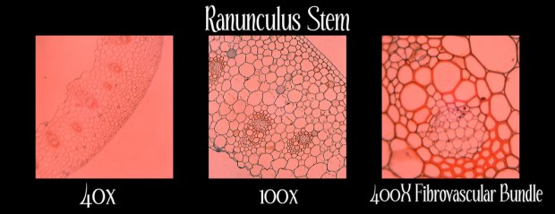 E. Observation of a lateral cross section of a Ranunculus Stem