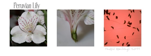 The object of this experiment was to observe various types of flowers and compare their differences and similarities. Each series of images below shows full flower, followed by vertical cross-section, then magnification of the corresponding pollen (click to enlarge):