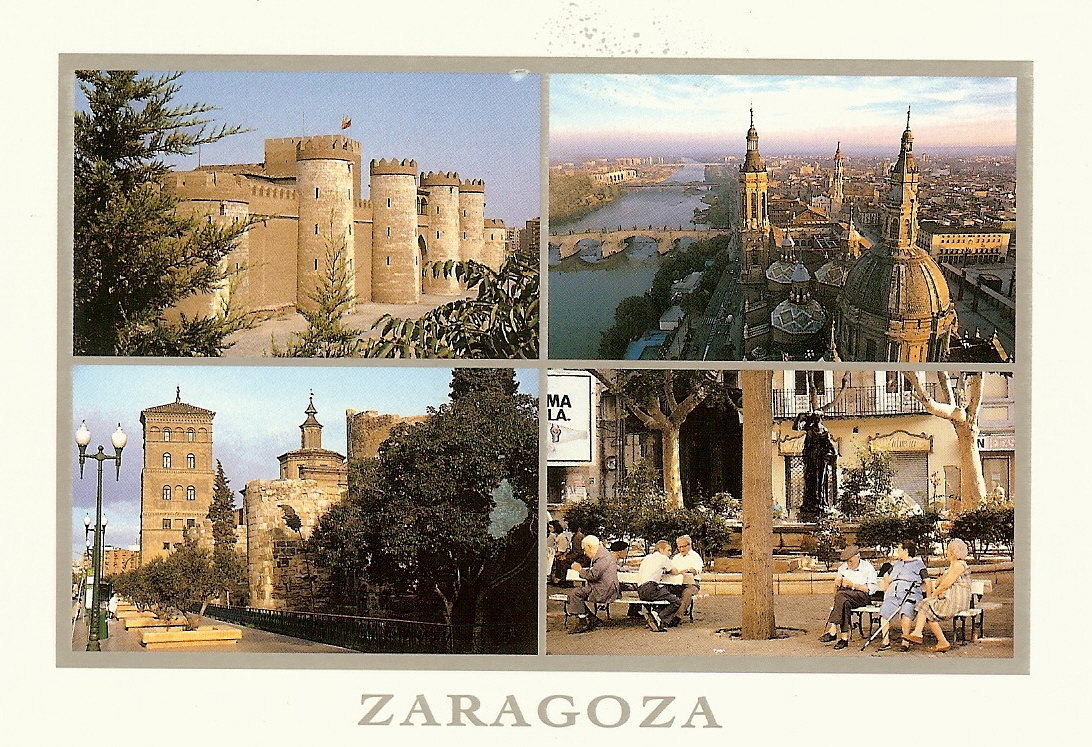 From Esther, who is 23 and studies English Language, Literature, and Film. This cards shows a few cathedrals and castles from the historic city of Zaragoza! The four scenes shown are that of Aijaferia, Vista Aerea Del Pilar, Murallas Romanas, and the Plaza del la Justicia.