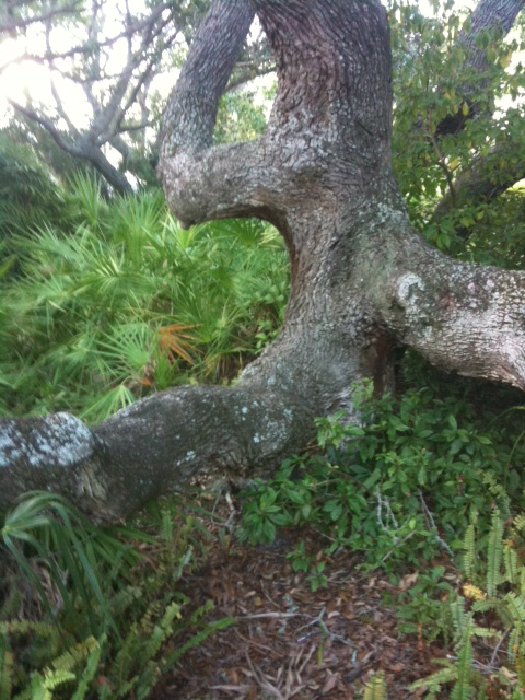 I took off toward the closest location. As I edged closer and closer to my target, I took a look at the “hint”…..OK, “It’s behind the tree with two eyes”. Tree located. My app told me I was within 19 feet, then 8 feet…I’m not seeing anything. Heading toward the arrow displayed on my compass, suddenly I’m 31 feet from the cache.