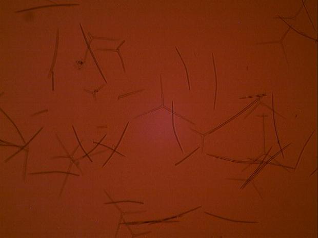 Next we took a look at some spicules from a prepared slide. These are spicules from Grantia (Scypha) sponge at 40X: