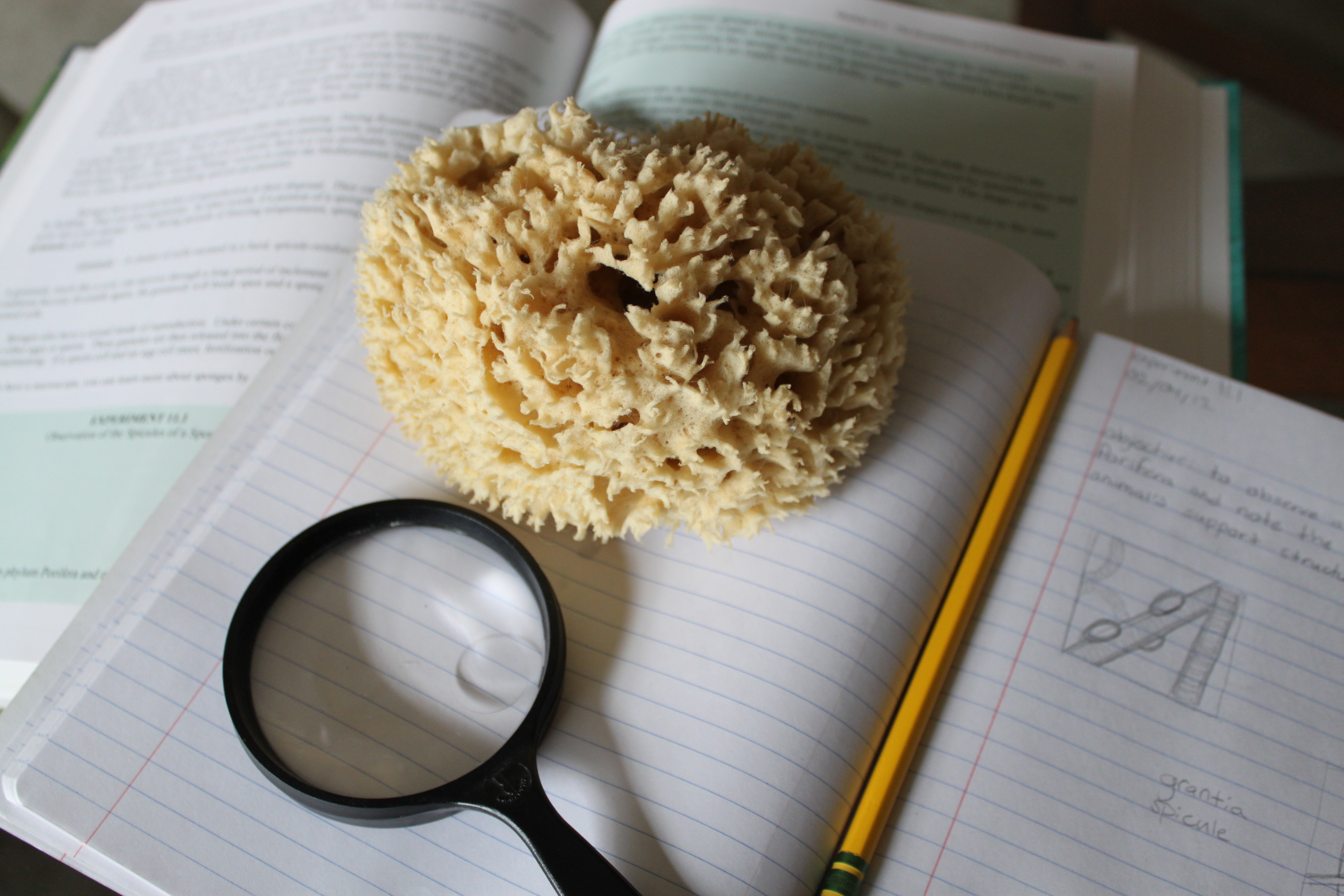 We started by examining a sponge that I had purchased awhile back up in Tarpon Springs at the Sponge Docks. Once wet, it is actually very soft! I’m not sure what type of sponge this is, but please feel free to leave a comment if you do.