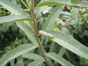 So I was just sitting out on the pool deck enjoying a smoothie, and I looked into the back yard, only to see that my milkweed is GONE! Not again…this happens a couple of times a year and usually I catch it before its bald. And I want to tell those catepillars, “Slow down, there’s enough for everyone.”